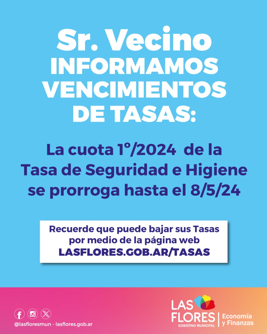 PRÓRROGA DEL VENCIMIENTO DE TASAS MUNICIPALES