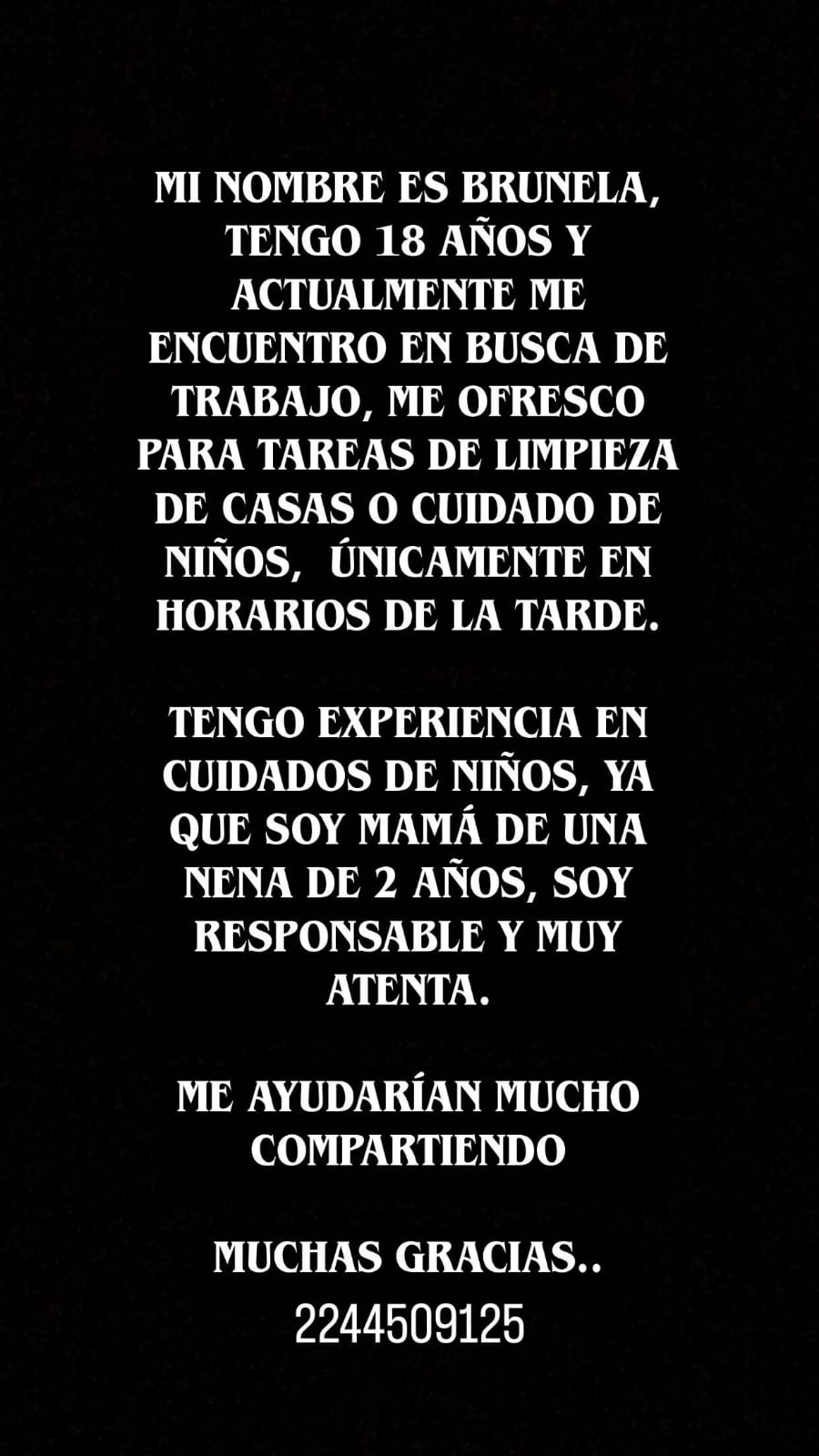 Castro Florencia Pamela DNI 39277912 contacto 2244422376 primario completo cuidados de adulto y limpieza